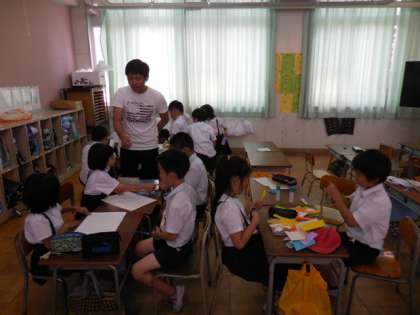 3時間目に縦割り班で集まって、柏小まつりの自分たちのお店の準備をしました。