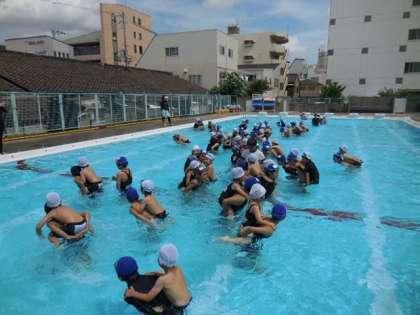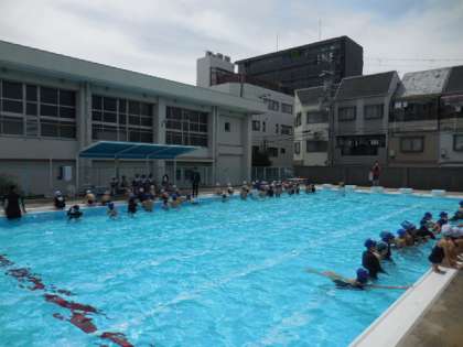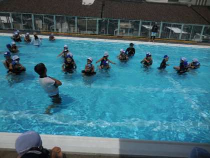 初めての小学校のプールの大きさや水の深さに戸惑う1年生もいましたが、すぐに慣れてきたようです。