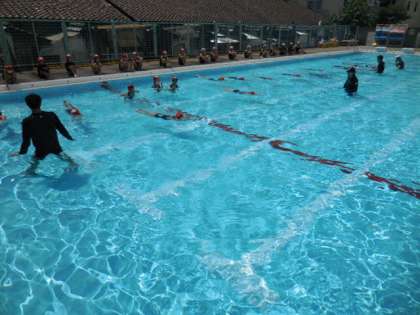 午後は、陽射しも強くなってきてプールでの学習ができました。