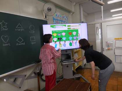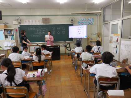 C-NETのプレンディ先生が来ていただく日は、5・6年生を主に英語活動の支援をしていただいてます。