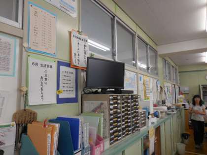 玄関にカメラ、職員室にモニターを設置しました。