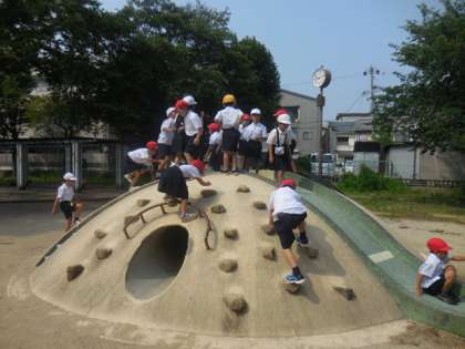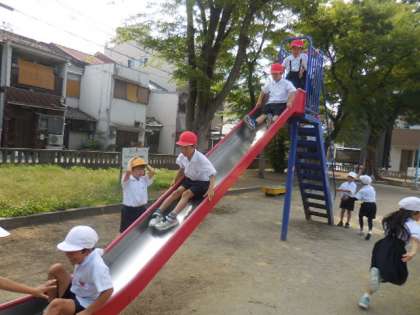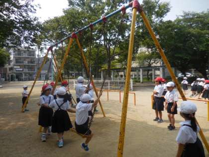 1年生が生活科の学習で、花川公園へ探検に出かけました。