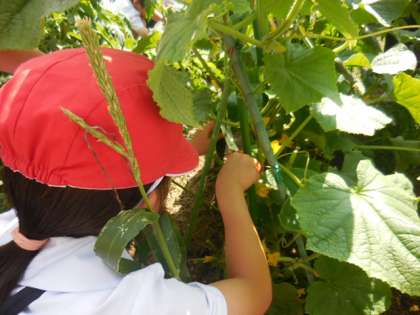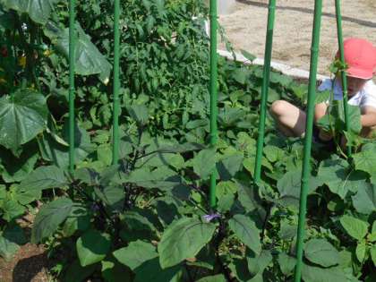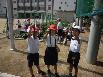 きゅうりやなすが、しっかりと育っていました。これから夏の盛りにかけて、どんどん実をつけることでしょう。