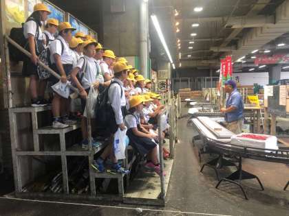 凄く大きい場内を順番に見学し、せりの説明も受けました。