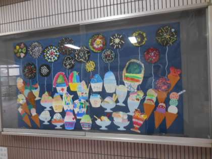 玄関の掲示は、5年生の作品です。ご来校の際には、近くで観ていただければと存じます。
