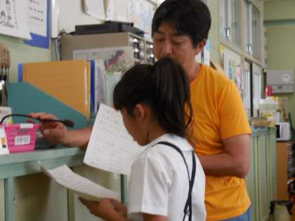 昨日に続いて、7月6日の土曜授業で開催する「柏小まつり」の子どもたちのお店の紹介をしていました。