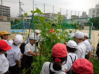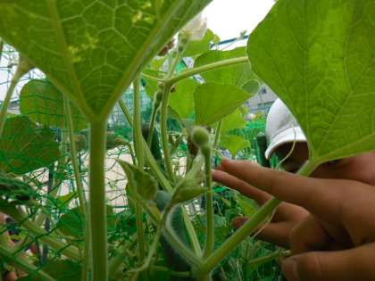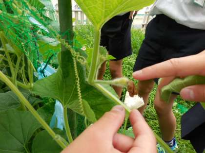 受粉したゴーヤやひょうたんのめしべには、小さなゴーヤやひょうたんができていました。