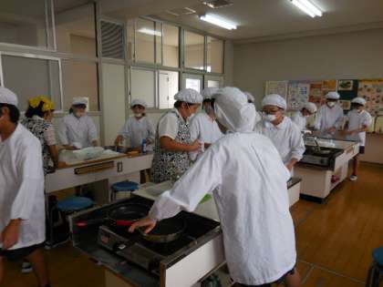 各班ごとに炒め物の朝食献立を考えて調理しています。