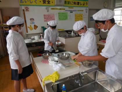 7/3 水 10:55 6年生家庭科 いためてつくろう朝食のおかず 2