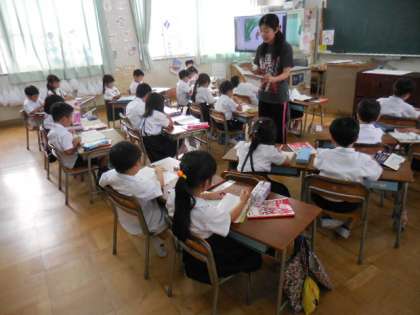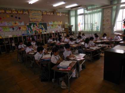 3時間目には、1年1組から音読する子どもの声が聞こえてきました。