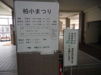 校内は、上履きですので、履いてこられた靴はお手持ちの袋に入れて、柏小まつりの様子をご参観ください。