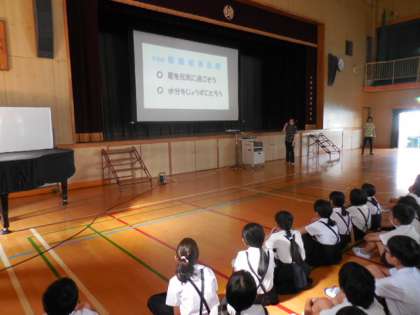 校長からの話の後、養護教諭、栄養教諭から、子どもたちへ「夏を元気に過ごす」ことをテーマにプレゼンテーションがありました。