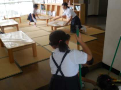 清掃活動も、1年生と一緒にしました。