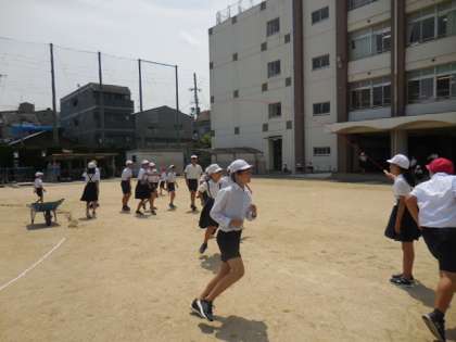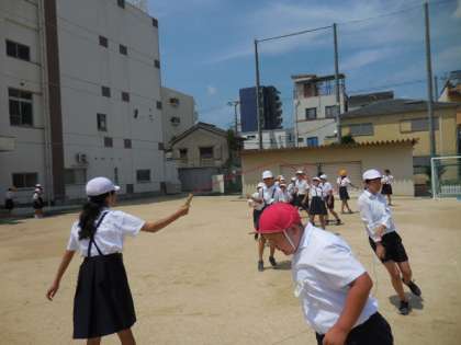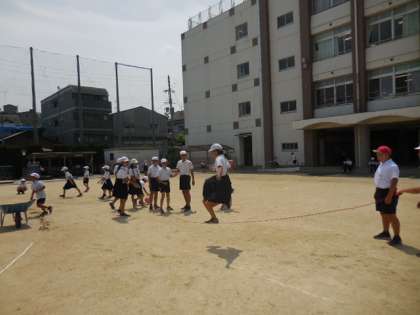 この暑さに負けず、6年生が「八の字跳び」をしていました。
