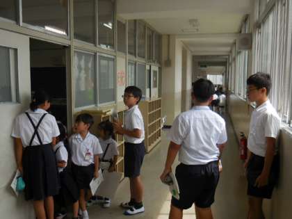 高学年児童は、とても低学年児童に優しく接しています。