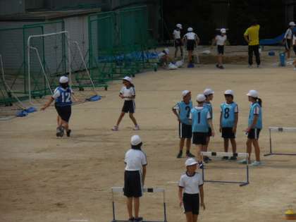 各種目の準備を整えて、「40mハードル走」から行いました。