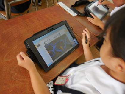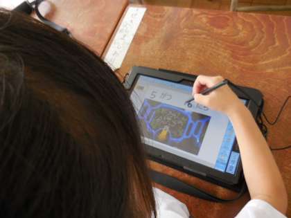 1年生の子どもたちはタブレット端末の扱いにも慣れ、ICT支援員の先生の支援もあって思うように編集することができました。