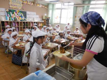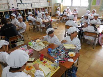 今日はカレーライスということもあり、おかわりが続出して、どのクラスも食缶が空になったようです。