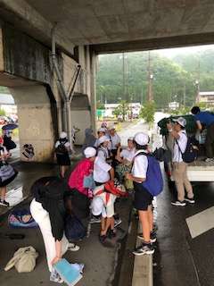 予定通りに近江高島駅に到着しました。大きな荷物を宿舎の方に預けて琵琶湖青少年の家へ向かいます。全員が元気です。