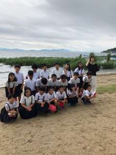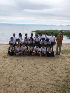 琵琶湖をバックにクラスごとに集合写真を撮りました。