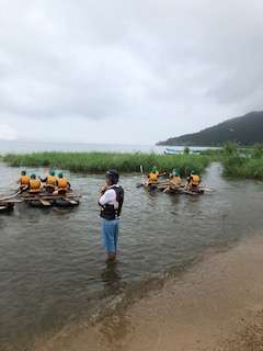 湖に向かって漕ぎ出しました。