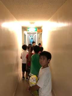 これからお風呂タイムです。男子女子それぞれ全員が一度に入ります。