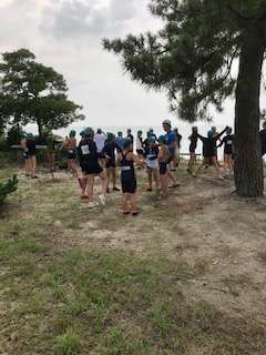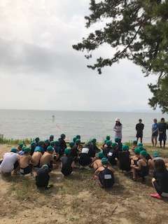 準備運動を班ごとにして、いよいよ琵琶湖へ向かいます。