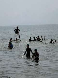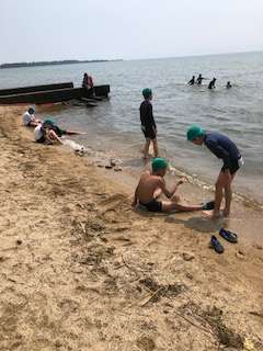 最後の遊泳タイムです。思い思いに過ごしています。魚や貝などの生き物も見つけていました。