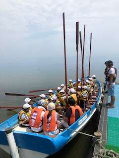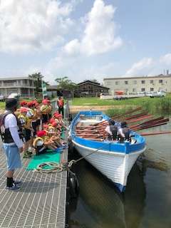 カッターに乗り込んでオールを備えていきます。
