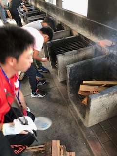 野外炊事の様子です。