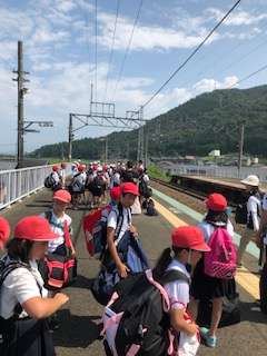 予定通り、高島駅14時21分発の電車に乗車しました。全員が元気です。