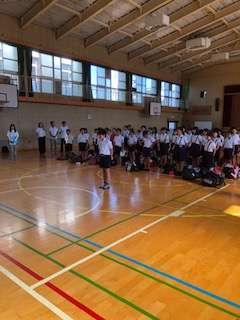 帰校式を講堂で行いました。