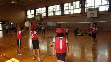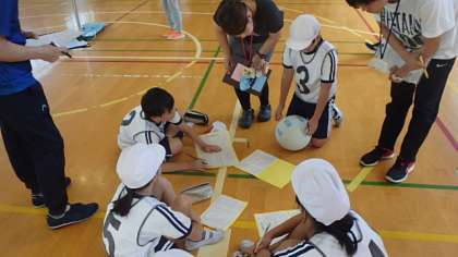 話し合いの中で、動きを確かめ合ったり、練習をし始めたりするチームもありました。