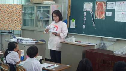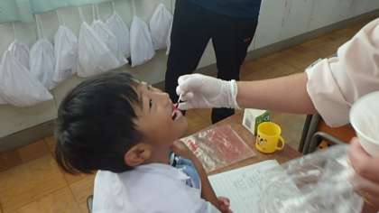 実際に歯の染め出しをすることを通して、歯の磨き方について学びました。