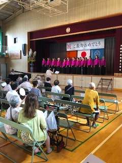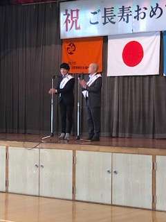 第2部 演芸が始まりました。まずは、柏里小学校生涯学習コーラス部の皆様によるコーラス。続いて西淀川住みます芸人のスキンケア大学による漫才がありました。