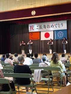 民謡に続いて、柏花老人クラブによる民謡。子どもお笑い道場の漫才を楽しみました。
