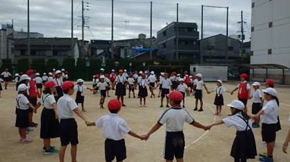 各縦割り班ごとに円形の隊形をとって踊ります。