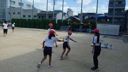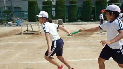 6年生は運動場へ出て、リレーの練習をしました。リレーについては1学期の体育学習で学んでいるので、ポイントを思い出したり、確認し合ったりしながら要領よく練習をしていました。
