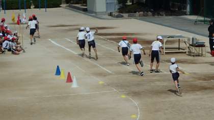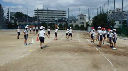 各チームごとに別れて練習を重ねた後、4時間目の最後に本番を想定したリレーをしました。