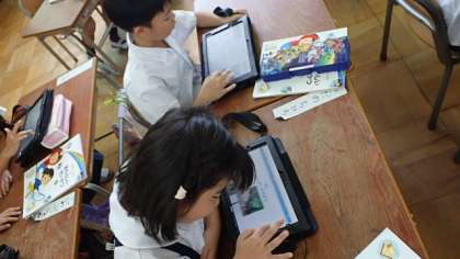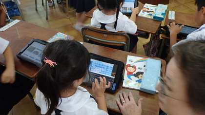 1年生もタブレット端末をこれまで使いながら学習をしたこともあり、上手に操作していました。