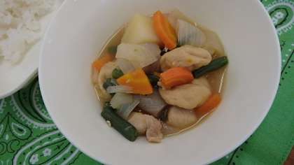 じゃがいもと一口がんもの煮物は、具材がよく煮込まれて柔らかく、出汁を含んでおりとてもおいしくいただきました。