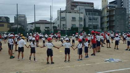 隊形の移動なども確認し、子どもたちはすぐにできていました。