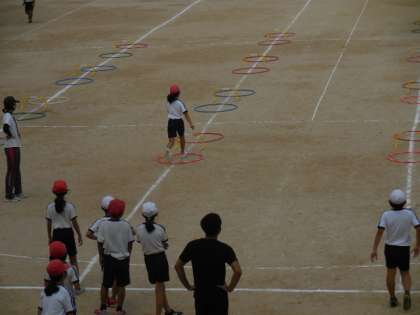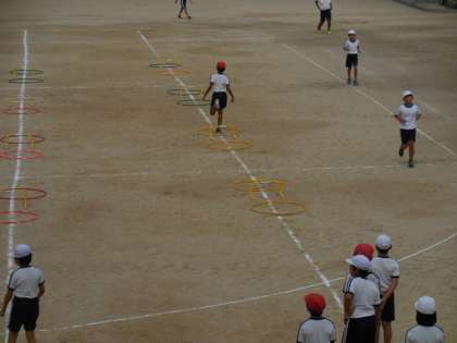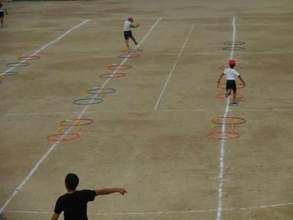 すでに、小型ハードルをリズミカルに走り抜けていく子どももいます。