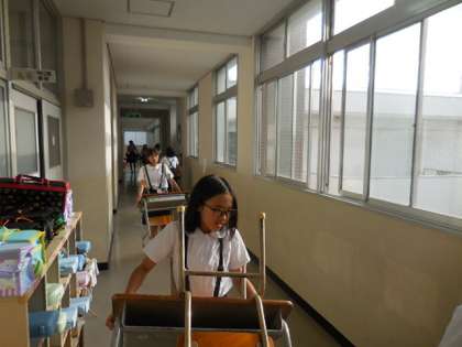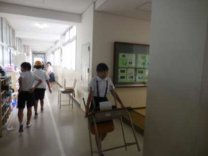 6年生児童のお手伝いで、全教室の適正な机・椅子の過不足を調整し、児童のよりよい姿勢の保持に努めます。