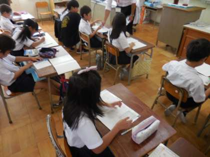 子どもたちは、落ち着いた態度で先生の指示を聴き取り、学習活動を進めていました。