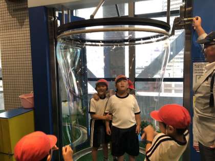 シャボン玉の中で、緊張しています。