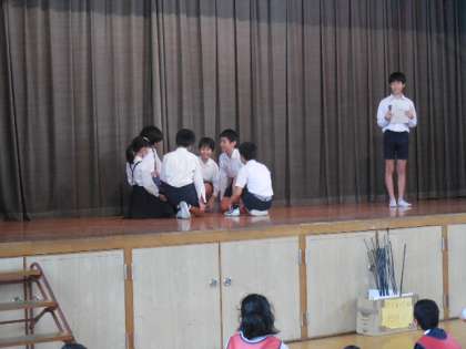 今朝は、集会委員会児童による「お話の題名当てクイズ」でした。