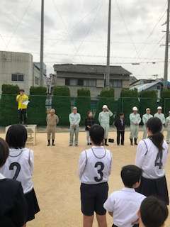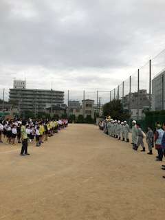 子どもたちは、登校班で集まっています。
