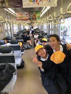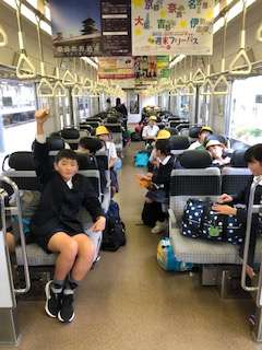 後10 分で、鶴橋駅に着きます。子どもたちは、降車準備完了です。全員元気です。
