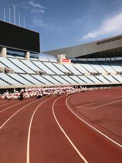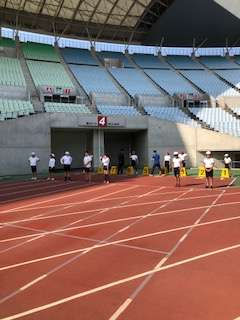 100m走が始まりました。大阪であった世界陸上100m決勝と同じところを走ります。